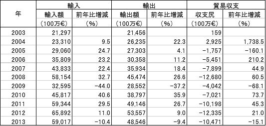 表2 ウクライナの対世界貿易の推移(2008~13年)
