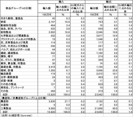 表4 EUのウクライナとの貿易(商品グループ/HS分類別)(2013年)