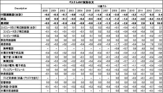 表―1 ベトナムのIT貿易収支の推移(2000~2013年)