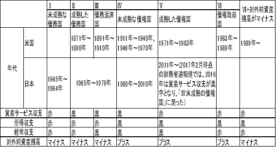 表1 米国と日本の国際収支の発展段階