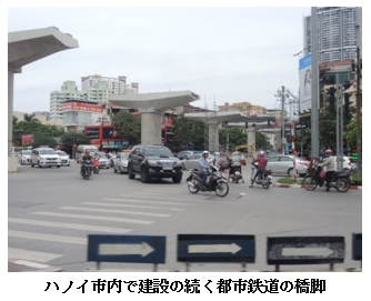 ITIアジアサプライチェーン研究会(公益財団法人JKA補助事業)は、2018年8月中旬、ベトナム北部、中部の交通インフラ、工業団地、人材育成、ベトナム企業等に係る現地調査を実施した。現地出張調査報告の第1弾は、ベトナム・ハノイ圏の交通インフラの整備状況について。 ここ数年で、ベトナムのハノイ周辺における交通インフラが急速に整備されてきた。例えば、ノイバイ国際空港と市内を結ぶ幹線道路にホン川(紅河)ニャッタン橋(日越友好橋)の供用が2015年1月に開始され、2016年1月からはハノイ市環状2号線のニャッタン~カウザイ間(6.4キロメートル)が開通して、市内と空港を結ぶ時間距離が大幅に短縮された。先月(2017年8月24日)、市内からニャッタン橋を渡り国際空港近くのイェン・フォン工業団地にあるサムスンの工場まで車で走行したが、早朝(7時10出発)でもあったせいか、30分程度で現地に着いた。 こうした交通インフラの整備は、ハノイ経済圏の拡大をもたらし、現地日系企業の活動に影響を与えている。ITIアジアサプライチェーン研究会のメンバーでメコンの交通インフラ事情に詳しい、福井県立大学地域経済研究所教授、春日 尚雄ITI客員研究員から現地出張を踏まえて、ハノイ周辺の交通インフラ整備とその影響について聞いた。(聞き手 大木博巳 ITI事務局長) ハノイはバンコクの2000年前後の状況-ハノイ周辺の交通インフラ整備が大きく進んでいるようですね。経済の発展段階の中で、今のハノイはASEANの他の大都市ではバンコクの2000年前後の状況に似ていると思います。ハノイ市内の混雑が激しくなり、その緩和のための公共交通整備が順次おこなわれています。現時点では建設工事のため一時的に混雑がよりひどくなっている地域もみられます。道路については、市内はボトルネック交差点の改良を中心におこなわれ、近郊との放射線状の高速道路の供用が開始されています。その中で、都市計画ではしばしば問題となる環状線がハノイ中央部を中心に整備されている。 第2環状は円借款、世銀融資でニャッタン橋を含む内環状線、第3環状は円借款により2018年完成予定の外環状線、さらに市内を30km以上迂回できる第4環状、加えて50km圏をカバーする第5環状まで計画されています。