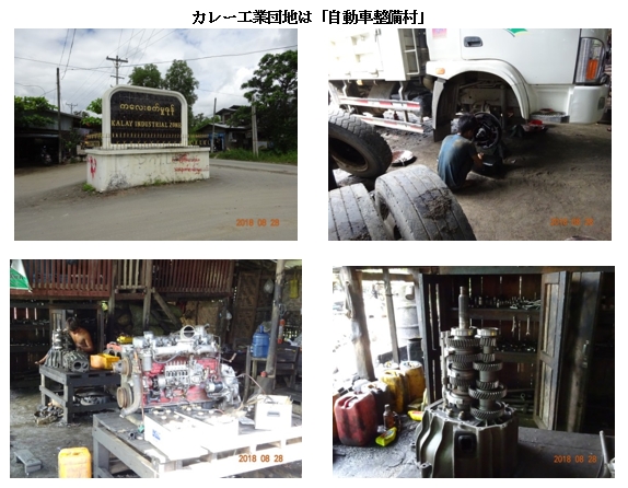 さらに約1時間後、チンドウィン川の支流のMyitthar川に架かるかなり大きい橋を北方向へ渡り、渡ったところで、シュウェボー方面から北西へ伸びる幹線道路(番号不明)に合流します。この分岐点を東へ行けばカレーワの街ですが、車は左折してここから24マイル(38.6㎞)のカレーミョへ向かいます。左手にMyitthar川を見ながら西へ走ります。支流とはいえかなり広く、石炭積み出しなどで中型級の船がたくさん活動していました。 この幹線道路は大型トラックの交通量が多く、その影響でしょうか、舗装が陥没した箇所が多かったです。またMyitthar川に多数の小川が注ぐところで片側通行の狭い簡易橋をいくつも渡ります。これらの橋の1つでも車両が座礁すれば、交通は全面的にストップすると思いました。 結局、モンユワからノンストップで約7時間でカレーミョに着きました。運転手は飛ばせるところは限りなく飛ばしましたが、平均時速は34km/hと、今回ミャンマー国土の南北を約半分を走破したなかでは最低のスピードでした。カレー工業団地ではミャンマー製造業の真髄を経験したとのことですが…はい、驚きました。現役の博物館に出会った感じでした。工業団地といっても実態は「車両整備村」のようでした。ざっと見て回った印象では、乗用車、トラック、農業機械など、車両整備の特殊な部分にそれぞれ特化した工房が上手にすみ分けられています。ほぼすべて日本の中古車をベースに、高額な日本の部品は取り換え可能な部分を中国製に組み替えて寿命を永らえさせたりしています。工員たちはすべて師匠からの現場学習によって技術を身につけている。ミャンマーの地方都市にはこうした光景は珍しくないと思いますが、この団地はたたき上げの工房の集積が著しいと感じました。 2017年12月のジェトロ報告によれば、同工業団地は2004年に開発され、面積は170エーカー(約69ha)と大きくありません。進出企業は130社ですべて地場、土地は50年リースで3.7~11ドル/m2ということです。問題は、ティラワのようなワンストップサービスの機能がないため、進出するには企業自らが政府関係機関と直接交渉する必要があるということです。