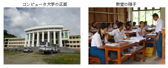 コンピュータ大学はいかがでしたか。コンピュータ大学はカレーミョ市から東へ約20km、カレーワへのちょうど中間に位置します。2001年6月に開学し、敷地は39エーカー(約16ha)と小ぶりです。コンピュータ科学分野で7つの学科、自然科学分野で3つの学科、計10学科あり、卒業授与学位はコンピュータ科学(BCSc)もしくはコンピュータ技術(BC Tech)の2つです。 カリキュラムは5年制で、4年間はキャンパスで過ごし、5年目は企業実習です。学生数は約250人と少数精鋭です。学生の3分の2はチン族で、キャンパス内の寮がまだ不十分なため、外部のアパート(hostelという表現)からバイクや送迎バスで通います。卒業後の就職先は地元のチン州とザガイン管区が多いそうです。教員数は約50人でその約半分はチン族だとのことです。