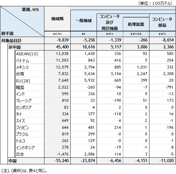 表5-1 米国の国地域別輸入増減額(2019-2018年)追加関税対象品目~一般機械