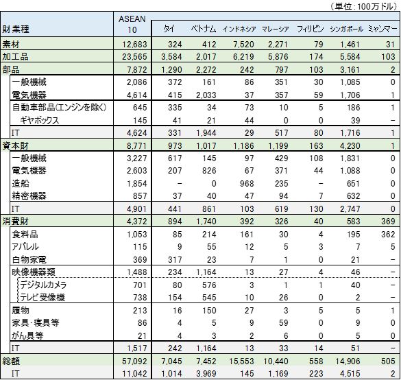 表6 インドの対ASEAN国別輸入(財・業種・IT関連製品別)2019年 ※クリックで拡大します 資料:インド貿易統計よりITI作成