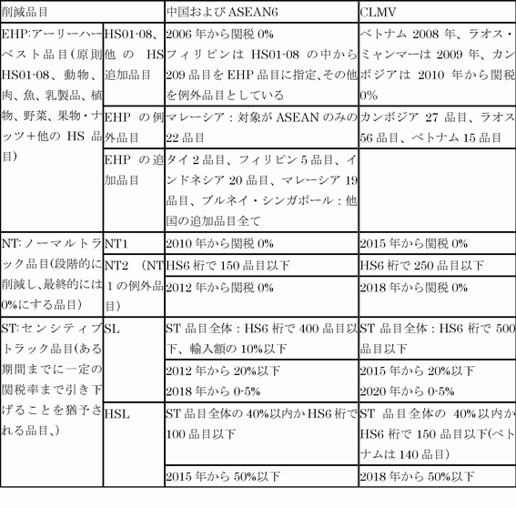 (資料) ACFTAの枠組み協定書と物品貿易協定書及びその修正議定書から作成 |