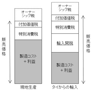 図表4 現在の現地生産車と輸入車のコスト構造