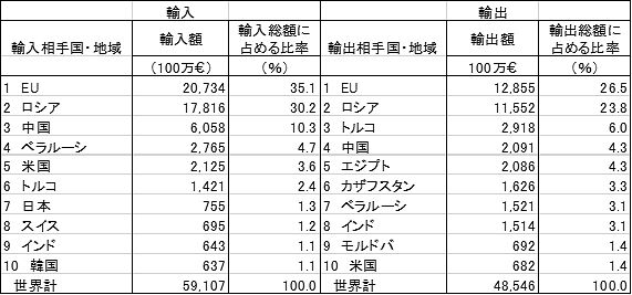 表3 ウクライナの主要相手国・地域別貿易(2013年)