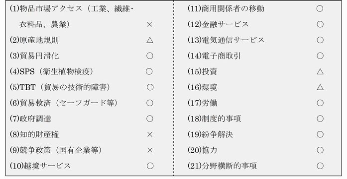表2 TPP交渉の21分野