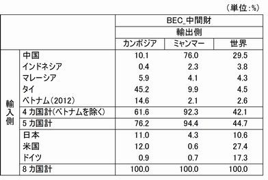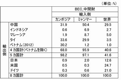 表31:ミャンマー・カンボジアの中間財の国別輸出構成比(2013年、100万ドル)