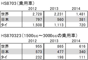 インドネシアの乗用車(HS8703)の輸入額は、ASEANの自動車大国であるタイからの輸入が2014年で7.2億ドルと最も多く、日本からの3.8億ドルの約2倍に達する(表4)。だが、排気量が1500ccから3000ccまでの乗用車(HS8703.23)については、2014年の日本からの輸入額は3.4億ドルと、タイ(1.1億ドル)を大きく上回る。さらに、日本からの輸入の3.4億ドルのうち、最も輸入額が多いのは「セダン及びステーションワゴンを除いた排気量2000cc~2500ccの2輪駆動の乗用車(完成車)」(HS8703.23.63.91)の1.8億ドルであり、日本からの輸入がインドネシア全体の輸入の90%以上と非常に大きなウェイトを占めている。この品目はJIEPAの譲許表で「P14」に該当しており、JIEPAの合意通りに税率が引き下げられていない品目の一つである。 セダン及びステーションワゴン以外の乗用車は、2014年の税率はMFNが40%、JIEPAが25.3%なので、仮に上記の「2000cc~2500ccの2輪駆動の乗用車」が全てJIEPAを適用してインドネシアに輸入されたとすれば約2,600万ドルがJIEPAによる関税の節約額、すなわち輸入業者のコストダウンになる。しかし、もしJIEPAの合意が守られ「P14」に準拠して20%に税率が引き下げられていた場合、得べかりし節約額は約3,700万ドルに増加する。 来年、2016年にはさらに影響が大きくなる。2016年のJIEPA税率は19.7%だが、本来の合意通りに税率が引き下げられた場合は5%と、約15%もの差が生じる。日本からの輸入額が2014年と同じ1.8億ドルと仮定すると、インドネシア側が合意通りに引き下げるか否かで関税の節約額に約2,700万ドルもの差が生じてしまうことになる。