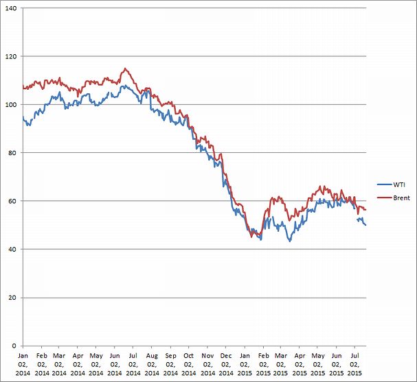 原油価格は2014年6月の水準からほぼ5割下落している。昨年からの油価急落をもたらした要因は、中国、インドなどアジア新興国の景気低迷に伴う需要の落ち込みと、米国におけるシェールオイル増産、OPEC減産見送りなどによる供給過剰だ。 <原油価格回復を阻む4つの要因>原油価格(WTI 期近物)は2015年3月中旬の43ドルから一時60ドル台まで回復したが、7月に入り、再び40ドル台までに落ち込んでいる。足元では、ギリシャ危機や中国株の下落に端を発した世界経済への先行き不安、制裁解除後に見込まれるイラン原油の供給増の思惑なども加わり、現在の低価格が常態化していくNew Oil Normalを予測する向きもある。(図) 米国エネルギー情報局(EIA)は、世界景気の回復で2015年後半から原油の消費と生産が均衡化し、油価が上昇していくとみている。これに対してノースダコタ州やテキサス州など米国の産油地域では「原油価格の低迷はしばらく続き、一時的な価格下げ止まりは売り方のショートカバーに過ぎない」とか、「原油価格はさらに低下し、ダブルボトムを形成する」との悲観的な見方すら出ている。