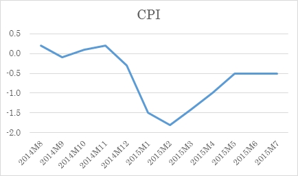 住宅ローンの貸出も2015年に入って対前年同月比で2ケタの伸びが続いており、2015年7月では+41.4%に達している。 EUは輸送ネットワークの整備を進めるTEN-Tというプログラムを持っている。バルト諸国はドイツ、ポーランドなどとフィンランドなど北欧との中間点にあり、近年輸送網の整備が進んでいる。リトアニアでも「Rail Baltica」などの巨大プロジェクトに関連した投資が堅調である。 EUでは主要道路にはE245などのE付きの番号が付けられており、高速道路に多く割り当てられている。リトアニアではA付きの道路が主要道路である(バルト諸国では乗用車は無料で通行できるが、トラックやバスは有料となる)。ビリニュス、カウナス、クライペダ、シャウレイが4大都市であり、それらを結ぶ主要道路にAが付けられている。A1(E85:ビリニュス=カウナス=クライペダ)やA2(E272:ビリニュス=パネベジュース)は大部分が片側2車線または3車線であるが、A8(E67:カウナス=パネベジュース)、A11(E272:クライペダ=シャウレイ)、A14(ビリニュス=ウテナ)やなどその他の多くは片側1車線であり、中央分離帯もない。このような道路は90km/hが制限速度となり、物流面で考えるとインフラ整備はまだまだ必要であると感じた。ちなみに、A14沿いにはヨーロッパの地理的中心地がある。 ただし、8月下旬から9月上旬にかけて3500kmほどバルト諸国を運転した経験からは、リトアニアは3カ国の中で最も道路状況がよく、その次がエストニアであり、ラトビアは整備状況が最も悪かった。特にラトビアでは、東部に位置するラトビア第2の都市ダウガフピルス周辺やリトアニアのザラサイへの道路(E262、ラトビアではA13、リトアニアではA6)などは延々と工事個所が続いており、物流に支障が出ているものと思われる。さらに、バルト諸国の地方では大型トラックが頻繁に通行する主要道路であっても未舗装路面が多く、通過スピードが遅くなっている。これらの整備にはまだ数年はかかるだろうが、物流面での整備や投資などのビジネスチャンスが多く眠っているともいえる。 ムーディーズは2015年5月8日にリトアニアの格付けをBaa1からA3に格上げしたが、その理由として好調なリトアニア経済、財政再建とともにユーロ参加を挙げている。リトアニアは小国であり世界経済の影響を受けやすい。資源価格の変動や対ロシアへの経済制裁の悪影響を受けているものの、今のところは堅調な内需に支えられている。 3.ユーロ切り替えで物価は上昇したかLietuvos Bankas (2013)はユーロ切り替えにより0.2-0.3%の物価上昇を予想している。この理由の一つに、消費者が正確な換算ができないことを利用した店側による便乗値上げを挙げていた。ビリニュスで衣料品店を営んでいる女性に物価について聞いてみたところ、ユーロに切り替わって食料品、特に野菜の価格が上がったという。ユーロとリタスの換算が難しいと言っていた。 実際には、資源価格の下落などの影響を受けて消費者物価指数は2015年に入って下落傾向にある。図表2のように2015年はデフレに陥っており、リトアニア中銀も2015年のインフレ率は-0.3%と予想している。