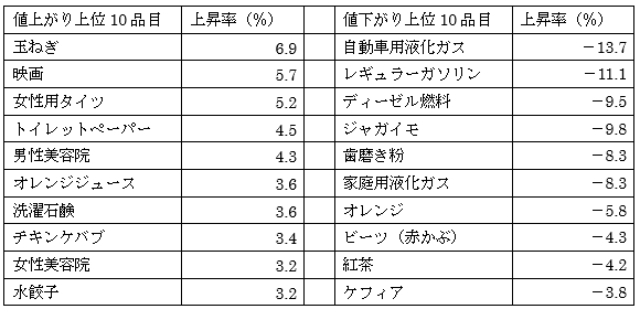 (注)データはStatistics Lithuania(Oficialiosios statistikos portalas)ホームページより。映画は休日の夕方割引の価格、チキンケバブは持ち帰り用、紅茶はティーバッグを指している。水餃子は日本でみるような形の他、様々な形のものがあるがリトアニアでは伝統的な食品である。