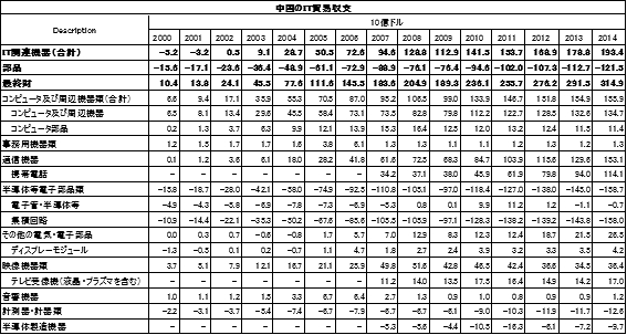 表―1 ベトナムのIT貿易収支の推移(2000~2013年)