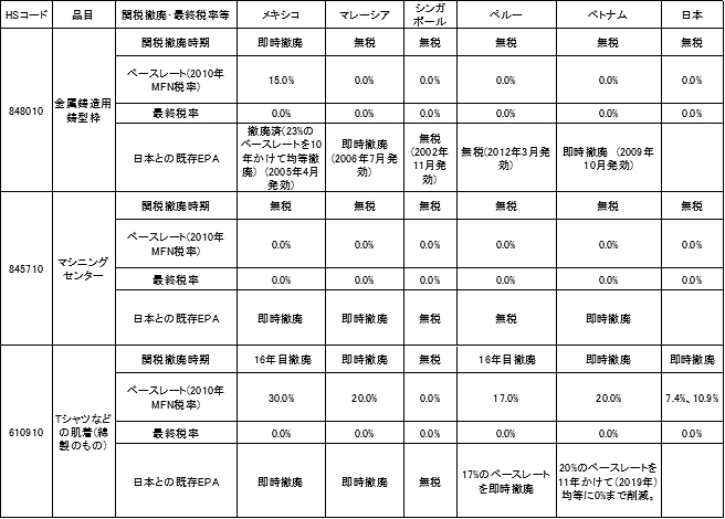 表 TPPにおける工業製品の関税削減スケジュール(譲許表) ![]()