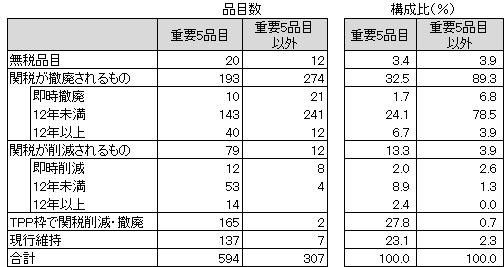 (出所)「TPPにおける農林水産物関税の最終結果」(農林水産省)