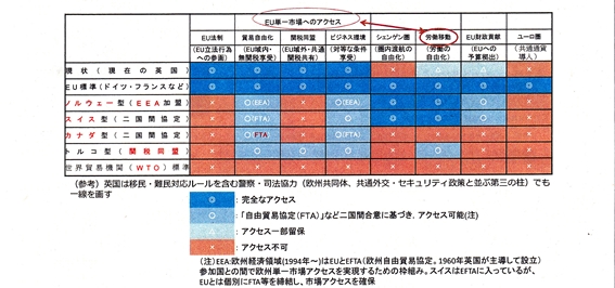 (資料)UK Government, Alternatives to membership: possible models for the UK outside EU(2016/03/04 ) 最大の争点は、「人の自由な移動」を規制しつつ、「単一市場へのアクセス」を維持したいという英国と、「人の自由移動」は「単一市場へのアクセス」の前提条件であるとするEU側の主張である。英国の要求がこれら4つのモデルのいずれでも充分にカバーできないとすれば、新たなタイプの協定もあり得るのではないか。前述したように、メイ首相は必ずしも既存のEUと非加盟国の関係に倣うとは限らないとの認識を示しているからである(注10)。次回以降の報告で、離脱後のシナリオを取り上げていく。