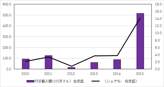 注 シェア(%)は、日本からの輸入が占める国別の割合