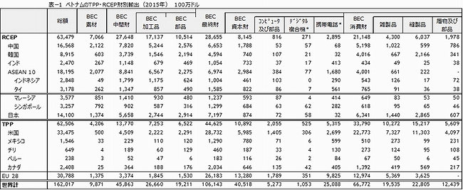 ベトナムのTPP貿易とRCEP貿易