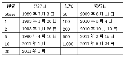 注:この他に2005年5月26日に発行された記念100クローナ札も有効。