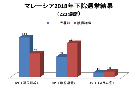 1.マレーシアに歴史的な政権交代をもたらしたマハティール旋風の背景93歳のマハティール氏が首相に帰り咲きました。激務にご高齢が懸念されていますが、体調は大丈夫でしょうか。‐マハティールさんが本格的な政治活動に復帰したのは、5年ぐらい前、88歳頃から再開しています。選挙に出ると決めてからは、もう毎日、町に行って“チュラマ”と称する政治集会で話をします。それも、30分ぐらい立ったまま。もちろん原稿もなしです。それを1か所ばかりじゃなく、3か所以上でやっていました。普通の老人はちょっとできない。やっぱり、超人的なところがあるようです。健康の秘訣を語っているようですが。‐何でマハティールさんはそんなに元気かというと、必ず言っているのは、やっぱり小さい頃からお母さんから、物を食べるときには、お腹いっぱいになるまで食うなと。お腹がいっぱいになる前にやめなさいと。日本語で言う腹八分目ですね。そういう育て方をされてきたからかもしれません。 今回の総選挙で盤石と思われていた与党、国民戦線が歴史的な敗北を喫しました。‐マレーシアの政党には、大きく分けて三つの主要グループがあります。国民戦線(BN)、希望連盟(パカタン・ハラパン:PH)、そして、PASというイスラム政党です。総選挙では、この三つ巴の闘いになりました。三つ巴になると、事前の予想では現職が強いということで、国民戦線が勝つだろうと、だれもが思っていました。私もそうでした。しかし、ふたを開けてみると、国民戦線の中核であるマレー人の政党UMNO(統一マレー人国民組織)が一人負け。PHが今回過半数を占めて、政権を握りました。 マレーシアの政権は、独立後60年間、国民戦線が担ってきました。マハティールさんもかつて、国民戦線にいました。国民戦線には13の政党が参加していますが、主力はマレー人の政党、UMNOです。UMNOは88議席から55議席にまで陥落しました。国民戦線を支えていたその他の少数政党が壊滅しました。華人の政党MCA(馬華公会)は1人しか当選ぜず、インド人の政党MIC(マレーシア・インド人会議)も2人に落ち込んでいます。これまでマレーシアの政治を支えてきた与党体制が、ほとんど崩壊に近いところまできたのです。 国民戦線は、ナジブのお父さん、二代目の首相のラザクさんが1974年にこれまでの野党勢力を含む13政党を寄せ集めたつくった連合政権です。今回、息子のラジブが親父のつくった国民戦線体制をぶっ壊したことになります。