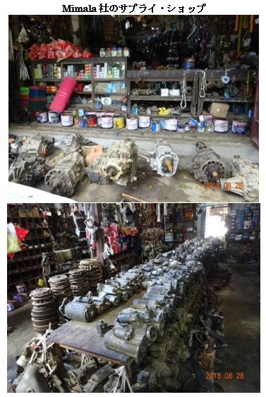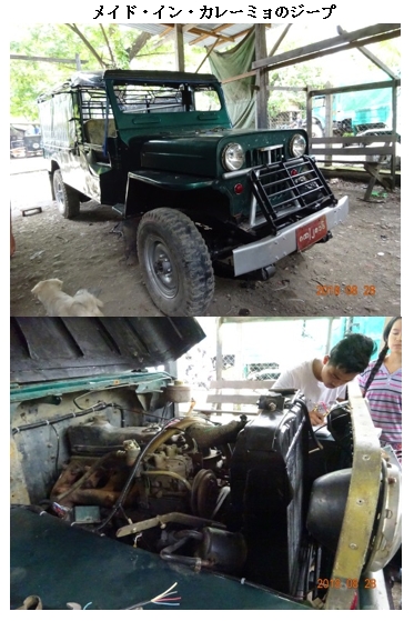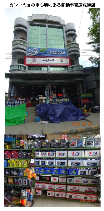 工房、いわゆるカロッツェリア(イタリア語で馬車や自動車の車体をデザイン・製造する業者。もしくはボディ修理業者(板金工場))が、こんな辺鄙なところで頑張っているとは不思議ですね。カレーミョで宿泊したホテルの若い男子スタッフがカレー大学の遠隔プログラムの英語学科を卒業したばかりで、即席ガイドをお願いしました。工業団地内で3件、自動車修理工房を訪ねました。 その1つは、団地内で彼らが唯一 “company”と呼ぶMimahaという名前のジープ組み立て工房でした。9フィート、10フィート, 15フィートの3種類ほどのHaimualというブランドの中国製ジープのボディをトラック用やミニバス用に改造し、排気量4000ccの三菱自動車製エンジンと日産製のパワーステアリングを組み込むといった創造性あふれる代物です。見た目はずんぐりとして新車には見えませんが、田舎で走るには馬力があって重宝しそうです。操業15年間で、通算500~1,000台生産したとのことです。1台造つくるのに3か月ほどかかり、視察時に見た15フィートのジープの売値は1,130万チャット(100万円弱)だそうです。買い手は地元かチン州のビジネスマンです。この工房のオーナーは地元カレーミョ出身で、すぐ近くに自動車部品販売店も持っています。そちらを覗くと、店の軒先には無造作に並べた古いギアボックス、店内にはモーター、ディスクなどこれも古いものがずらりと展示販売されています。カウンターの棚には新品のオイルフィルター(ほとんど中国製)や軸受けベアリング(これは光洋精工(現ジャイテクト)やNTNといった日本製)が並んでいました。