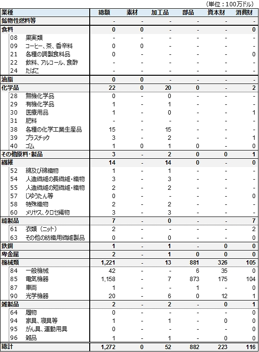 表4 昆明税関区の対インド輸出(財別業種別、2017年)
