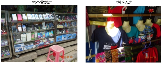 携帯電話店の店先に並ぶのは華為(ファーウェイ)などほぼ中国製で、キーパッドだけインドからの輸入品でした。衣料品については、伝統的デザインのものはミャンマー製ですが、Tシャツやジーンズ等は中国からの輸入品です。