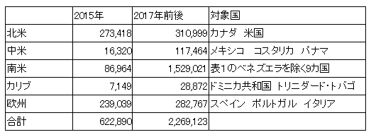 (注1)中南米・カリブには同表に掲載していない国も含む)