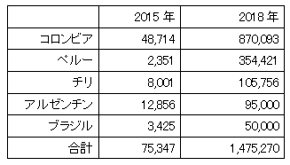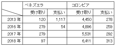 (注1) ベネズエラの2017年以降の支払いは不記載 表7 コロンビアの移民送金受け取り額推移(単位:100万ドル)