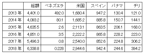 表4 南米各国のベネズエラ人移民(単位:人数)