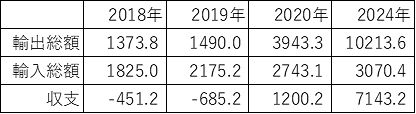 表9. ガイアナの輸出入総額と収支の推移(単位:100万ドル)