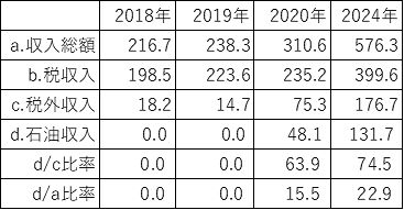 表11. ガイアナ政府の収入構造(単位:10億ガイアナドル. パーセント)