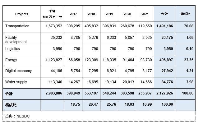 表1 第12期国家開発計画に基づくインフラプロジェクト(2017年~2021年)